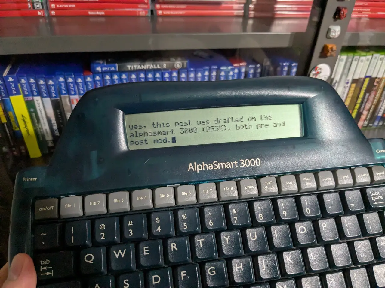 Yes, this post was drafted on the AlphaSmart 3000 (AS3K), both pre and post mod.