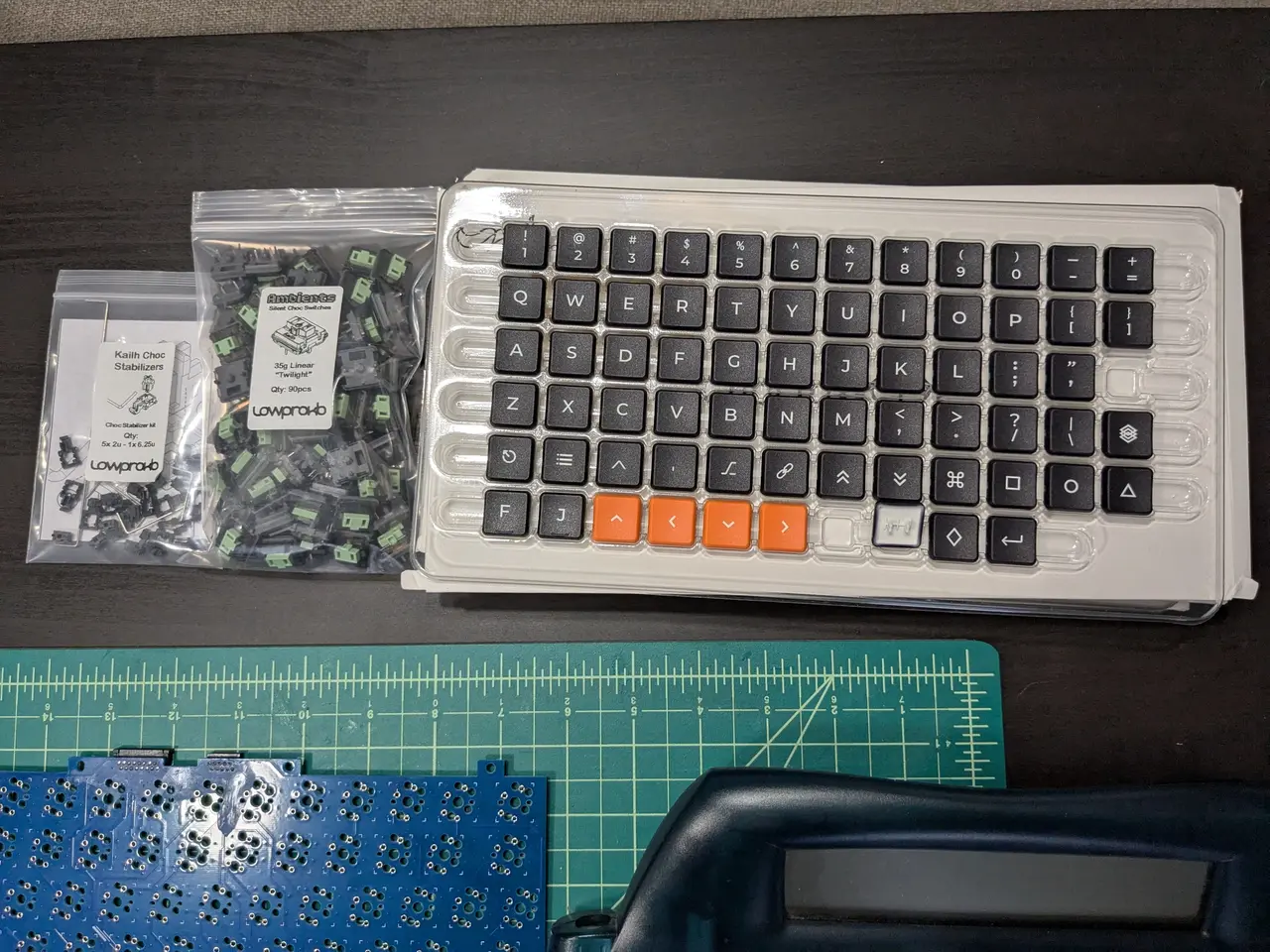 Now to figure out switches. There were more options here, but still limited when compared to MX. Thanks to Octonite, my mentor into smol boards and Chocs, I learned about the Lowprokb.ca Ambient Choc switches. They were kind enough to introduce me to their Choctopus44 keyboard and the Ambient Twilight switches. I didn't know what to expect, but I was very pleasantly surprised by the feel. But months later, I kind of forgot about Chocs and wanted to get some more hands-on experience.