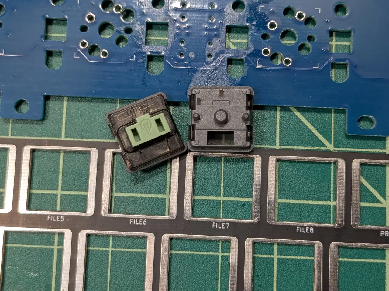 I didn't know what to expect with my first Choc V1 build, but it went smoothly. The kit came with an FR4 plate, so I pressed the Twilights into the plate, then pushed the assembly into the plate. No issues here, just a bit fiddly.